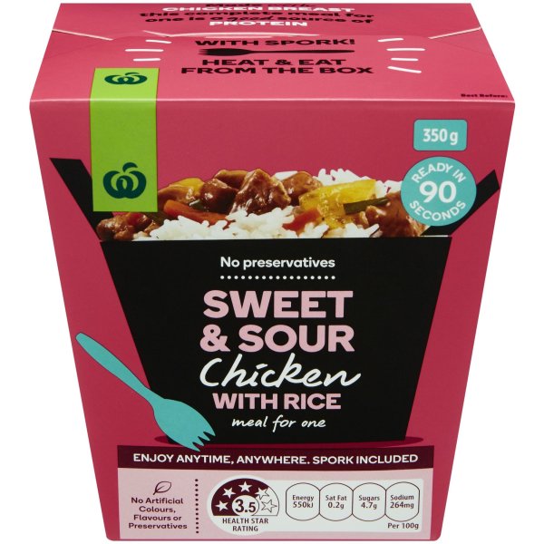 Woolworths Sweet & Sour Chicken With Rice 350g (Pantry)