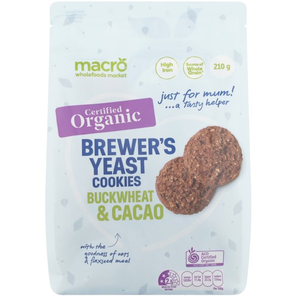 Macro Organic Brewers Yeast Cookies Buckwheat & Cacao 210g