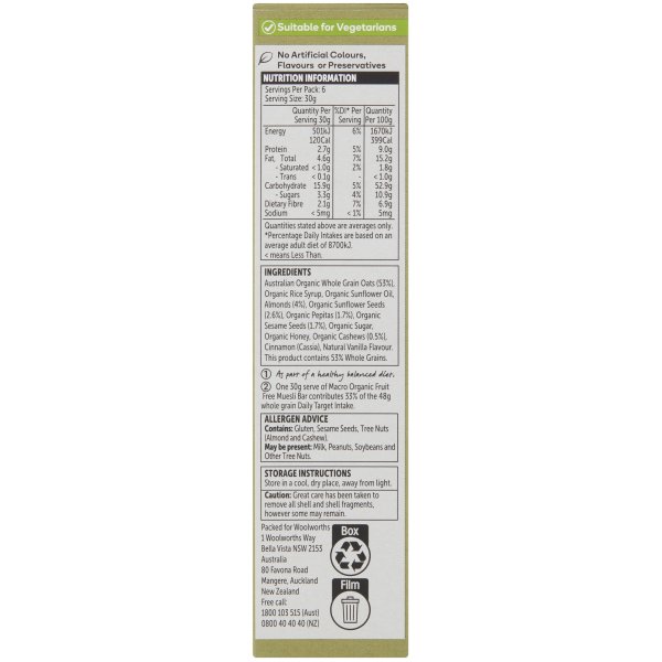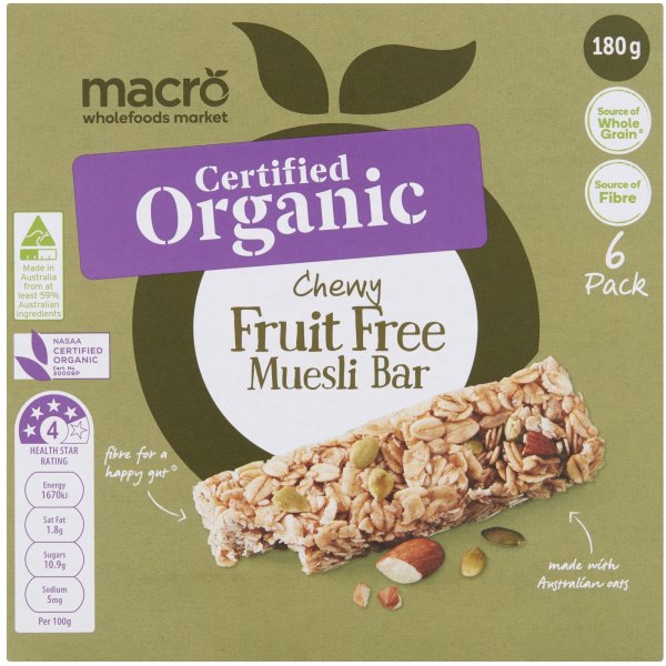 Macro Organic Chewy Fruit Free Muesli Bars 6 Pack