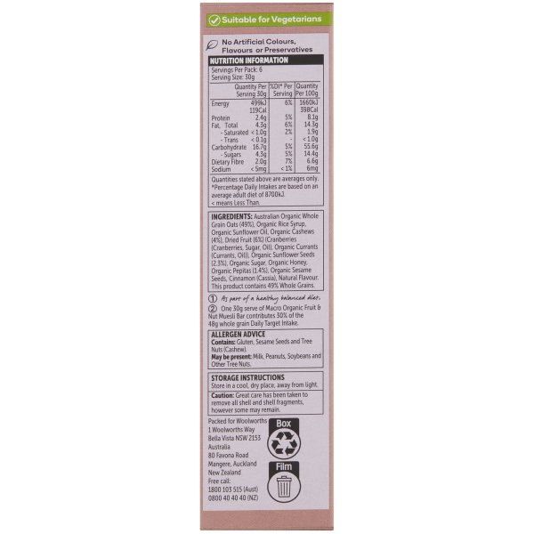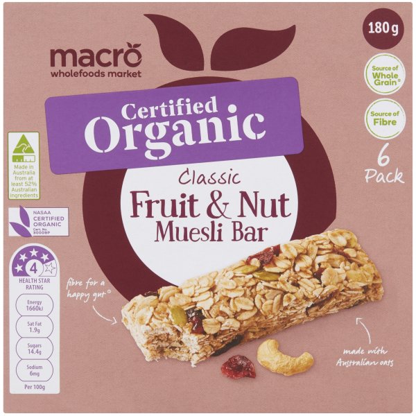 Macro Organic Classic Fruit & Nut Muesli Bars 6 Pack