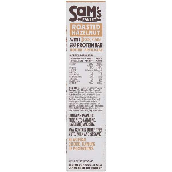 Sam's Pantry Roasted Hazelnut Protein Bar 5 Pack 190g