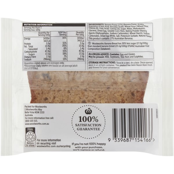 Woolworths Banana Bread Slices Less Sugar 100g