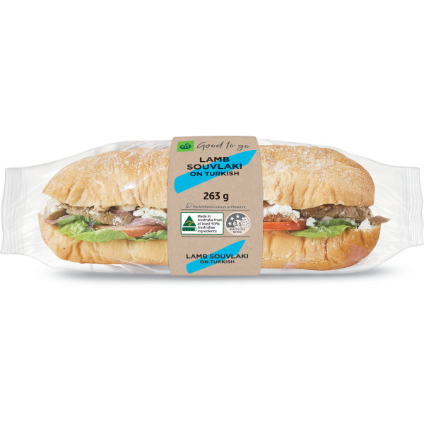 Woolworths Good2Go Lamb Souvlaki on Turkish 263g