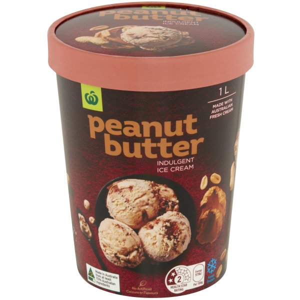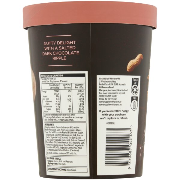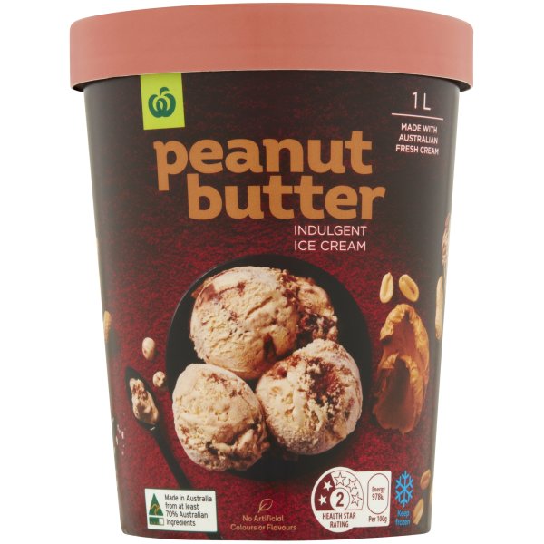 Woolworths Peanut Butter & Salted Chocolate Ice Cream 1l