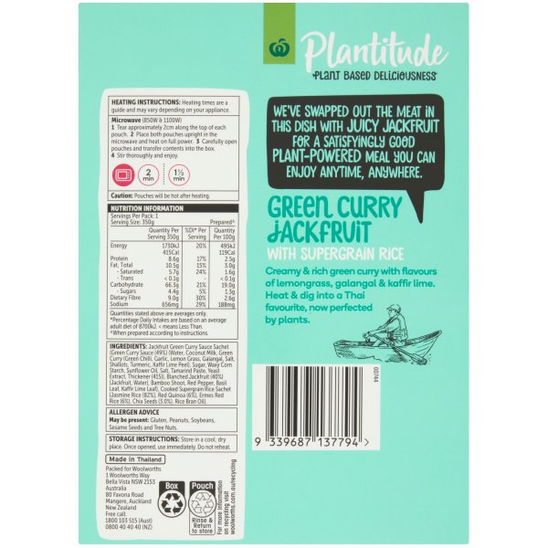 Woolworths Plantitude Green Curry Jackfruit With Rice 350g
