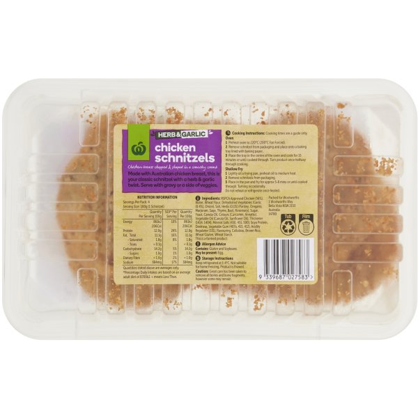 Woolworths Rspca Chicken Schnitzel Herb & Garlic 400g