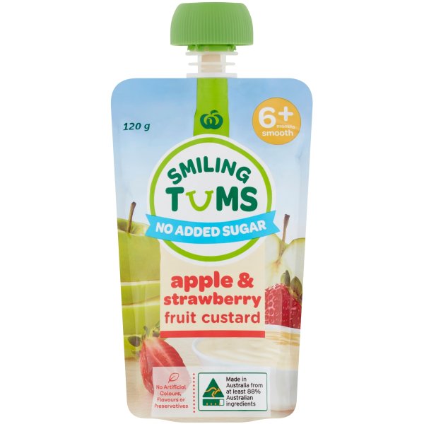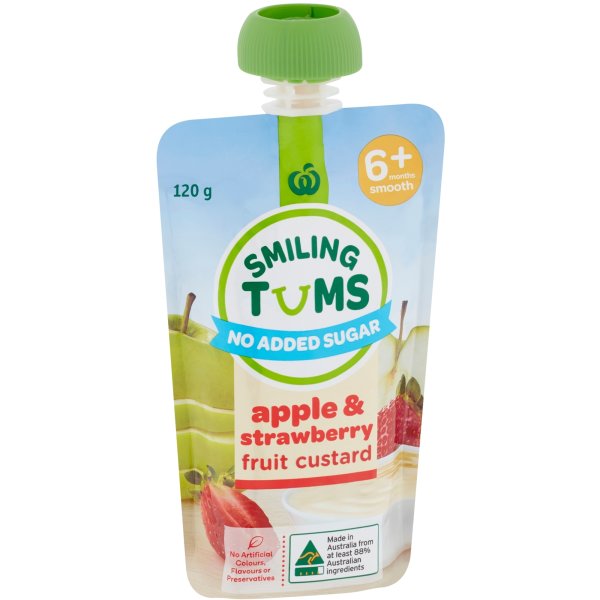 Woolworths Smiling Tums 6 Months+ Apple & Strawberry Custard 120g